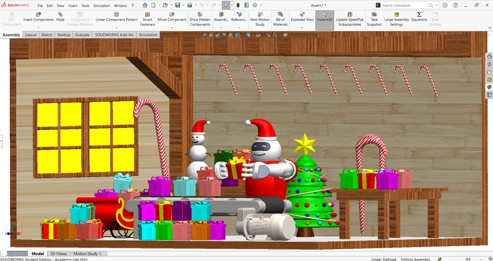 I assembled the three-bladed wind turbine rotor, correctly integrating the rotor plates, the hub, and the blades, ensuring dimensional and geometric consistency to avoid interference between components during operation. To guarantee precise assembly, I used positional relationships such as concentric, coincident, and parallel, ensuring the correct alignment of the blades with respect to the axis of rotation and the rotor body, as well as the correct assembly of the other components. As a result,
