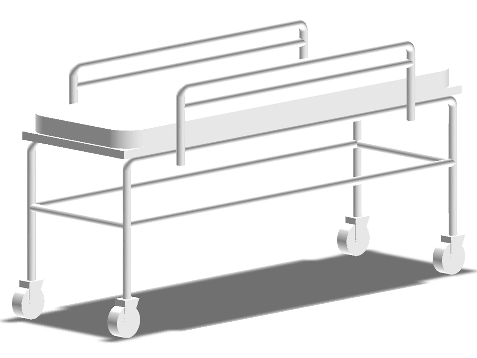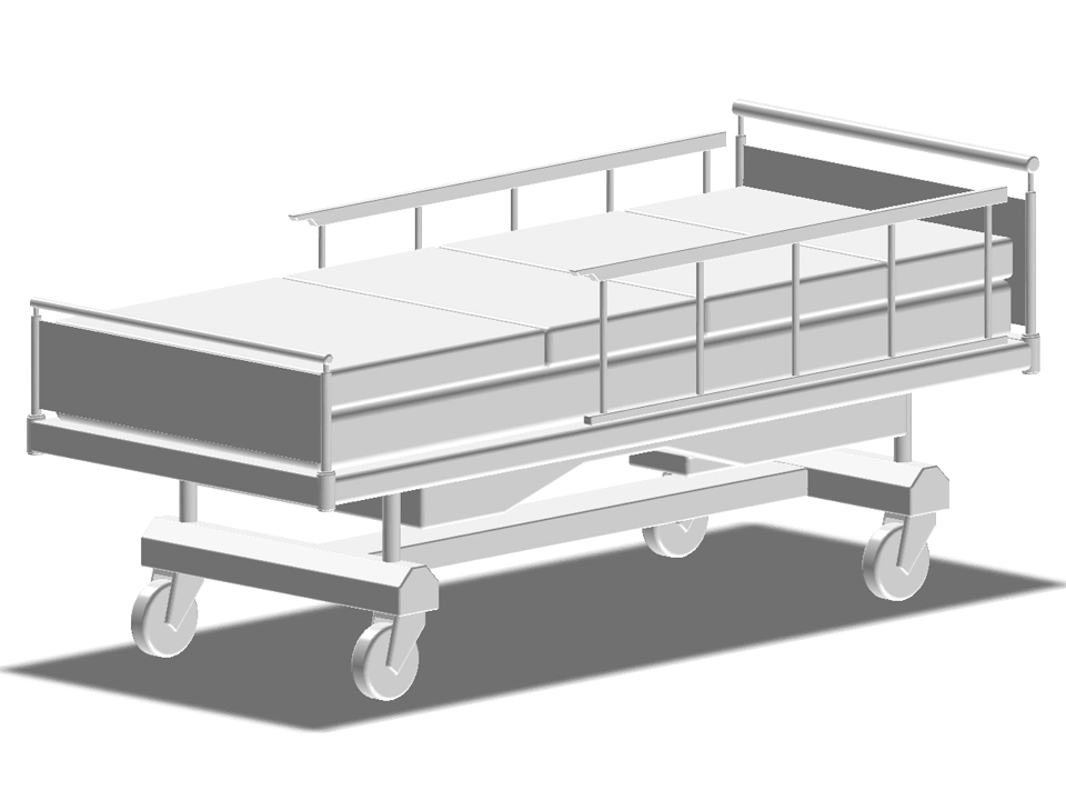 2026 Hospital content Equipment Reference Reference Image 3DXML: Object Type Name: OT-Hospital Equipment-Wheeled Stretcher Documentation:Input Axis System: The Input Axis System for the wheeled stretcher is centered on the patient head end. The X axis is in the same direction as the unit front. Configurations: Wheeled stretcher with side rails Wheeled stretcher without side rails Full Documentation in PDF: