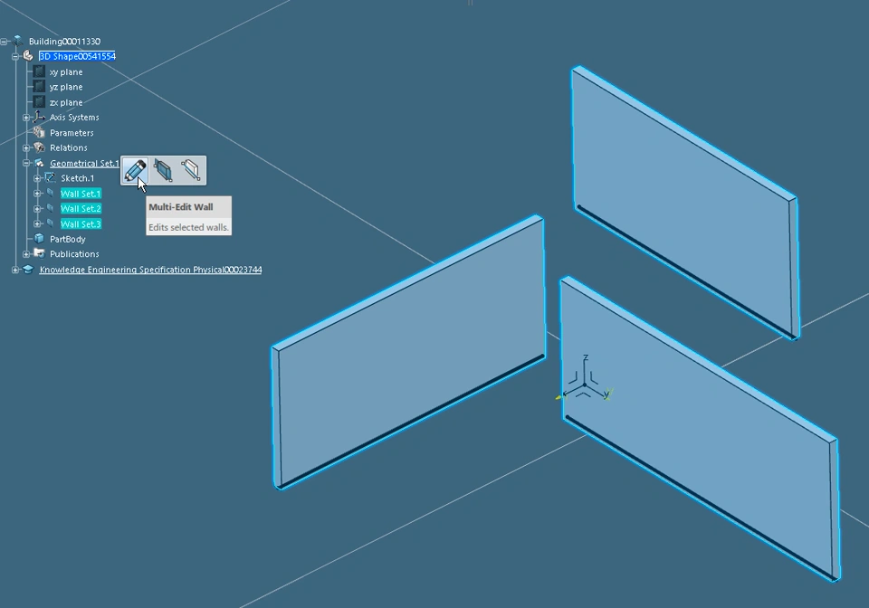 Description Wall Objects can be used with Building 3D Design to convert low-level wall features into higher-level wall features. These features can then be converted to an even higher-detailed product assembly structure. Parameters / OutputsNote: Parameters will slightly vary depending on the wall object-type selected How Its Used / Image Gallery Create desired walls using the "Wall" function in Building 3D Design Shift-select the desired walls then select "Multi-Edit Wall" Beside the