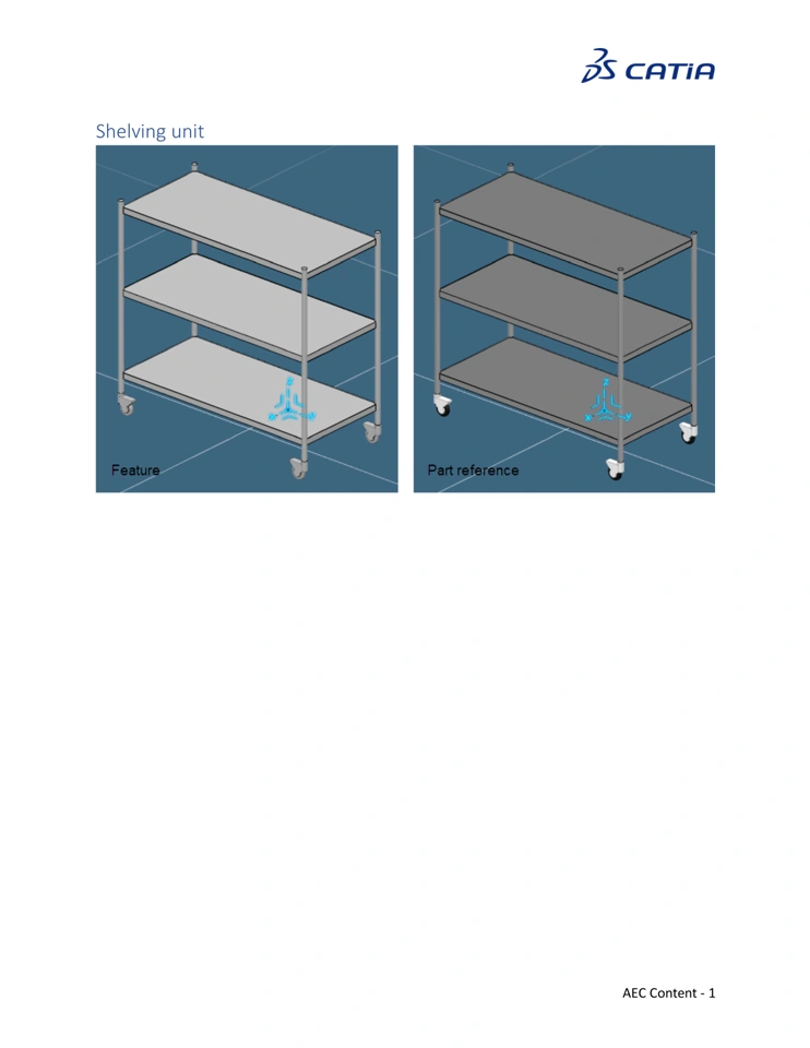 2026 content Furniture Reference Reference Image 3DXML: Object Type Name: OT-Furniture-Shelving Unit Documentation:Input Axis System: The Input Axis System for the shelving unit is centered on the back edge. The X axis points towards the front of the shelving unit. The front and back edges of the shelving unit are the long edges. Configurations: Shelving Unit-3 Shelves Shelving Unit-4 Shelves Shelving Unit-5 Shelves Shelving Unit-6 Shelves Full Documentation in PDF:
