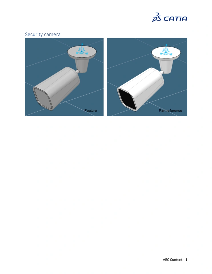 2026 content Security Reference Reference Images 3DXML: Object Type Name: OT-Security-Security Camera Documentation:Input Axis System: The Input Axis System for the security camera is centered on the circular mounting surface. The X axis points in the camera view direction. Configurations: Bullet Security Camera Dome Security Camera Full Documentation in PDF: