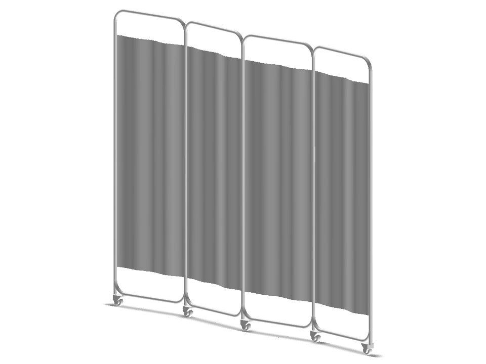 2026 Hospital content Furniture Reference Reference Image 3DXML: Object Type Name: OT-Hospital Furniture-Privacy Screen Documentation:Input Axis System: The Input Axis System for the privacy screen is centered on the middle of the privacy screen span on the floor. The X axis is in the same direction as the privacy screen front. Configurations: Wheeled String Hung Full Documentation in PDF: