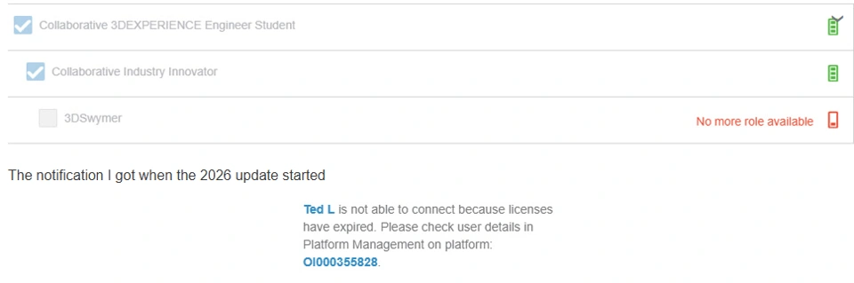 After the 2026x update, I realised I had lost all my roles. I tried to restore them, but it didn’t work. For example, when I attempt to grant myself the Engineer role, it says I need the 3D Swymer role. However, since I already granted that to myself, I’m unable to assign the Engineer role.