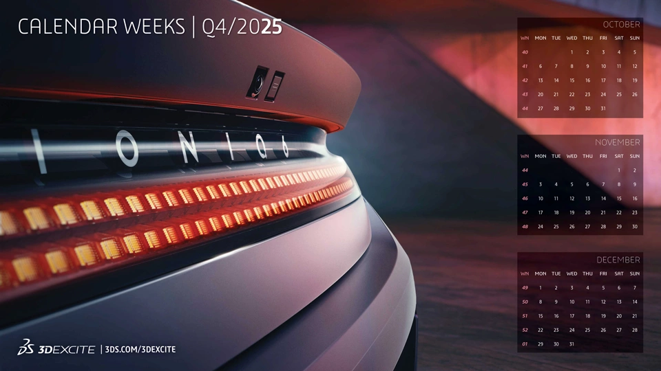 Enjoy our new desktop wallpaper for Q4 - featuring a detailed rear view of the new Hyundai IONIQ 6, rendered with DELTAGEN 2025x! Resolution: 2560 x 1440 Resolution: 3840 x 2160