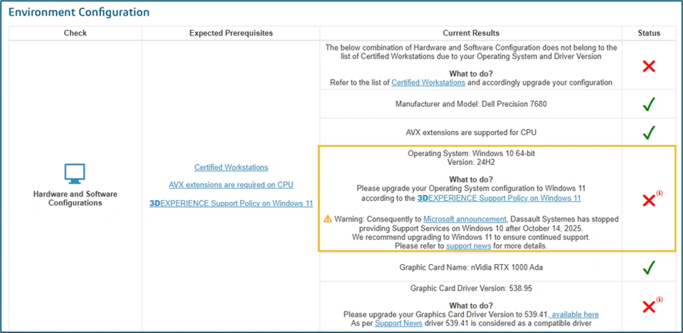 As a result of the Microsoft announcement, Dassault Systèmes has stopped providing Support Services on Windows 10 after October 14, 2025. We recommend upgrading to Windows 11 to ensure continued support. Please refer to support news for more details.